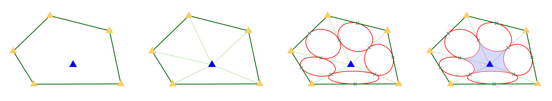$P_i$는 모두 다른 정수 좌표의 점이며, 반시계 방향 순서로 주어진다. 또한, 서로 다른 세 점이 한 직선 위에 놓이지 않는다.
