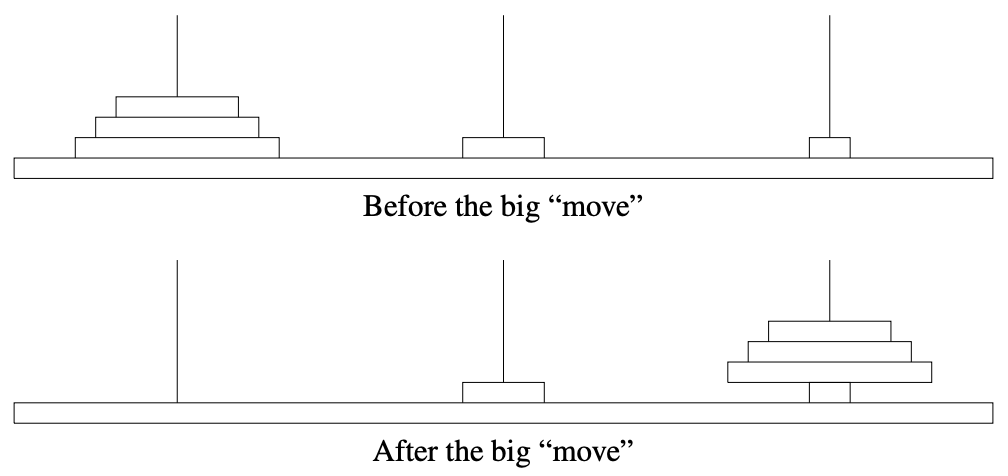 Lucas believes that at six years old, his son is ready to learn some basic algorithms. To start, he chose one of the most beautiful techniques: recursion, and to illustrate it, he picked the wellknown recursion game: the Tower of Hanoi.