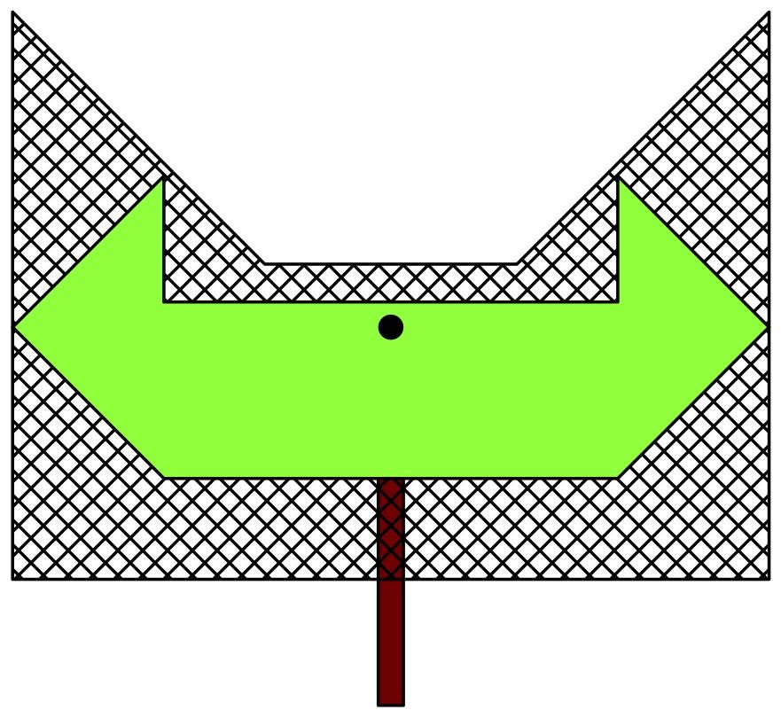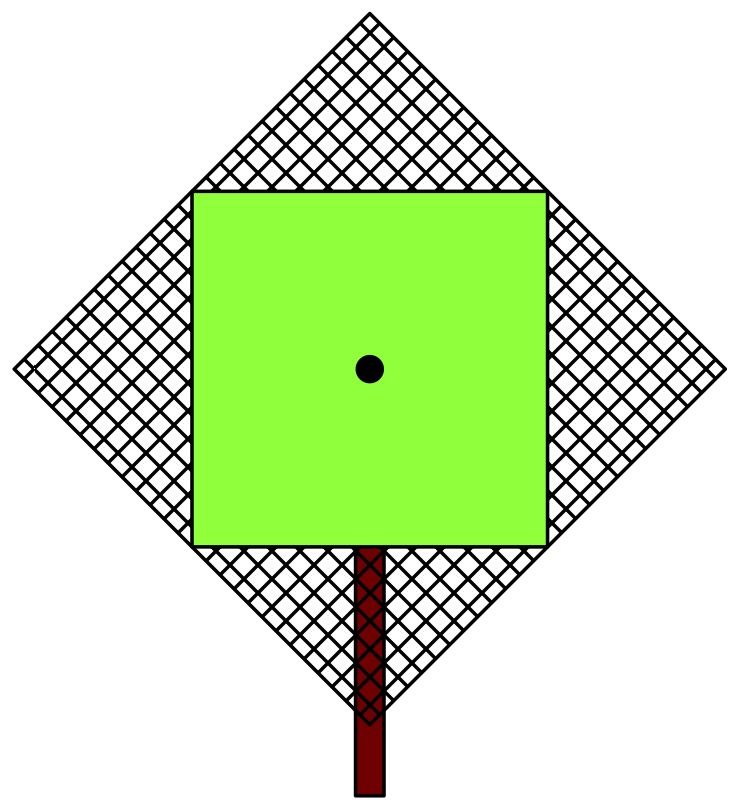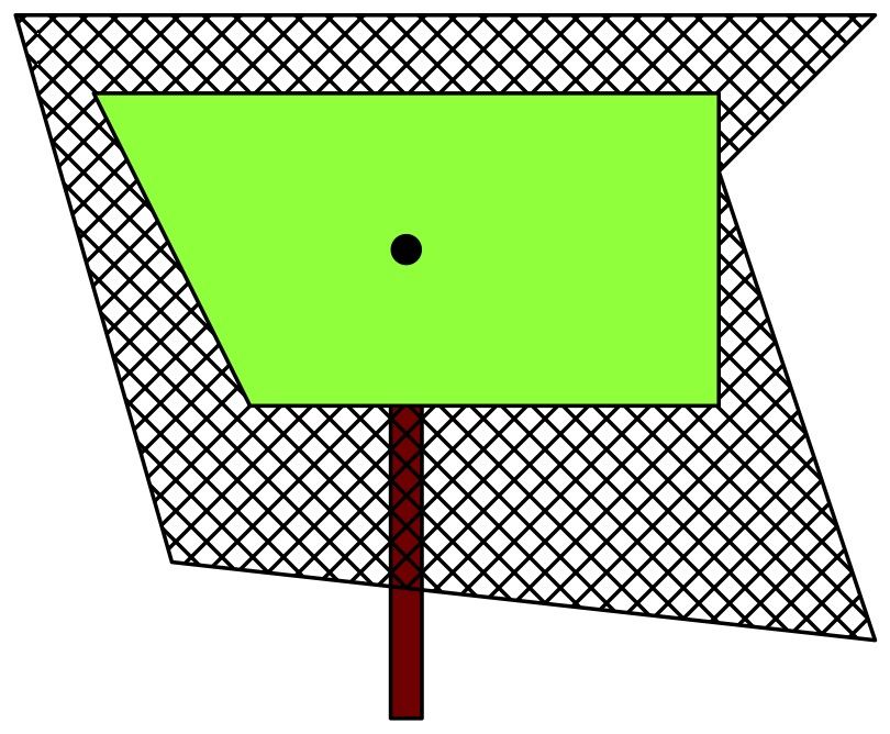 Our polygon-shaped bush needs a trim. We would like to cut it down to size so that the remaining leaves of the bush form a new shape of our choosing, with its centre sitting on the top of the stem -- represented as the origin $(0, 0)$ in both shapes.