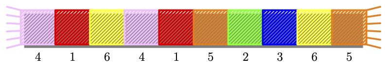 Figure K.1: A knitted solution to sample input 1. No colour is used more than twice, nor is any colour repeated within 3 consecutive stripes.
