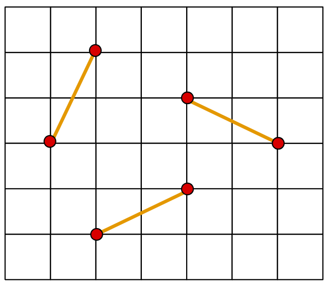 Notice that this definition closely matches how a knight moves in chess. For example, here are three pairs of points that are a knight-move apart: