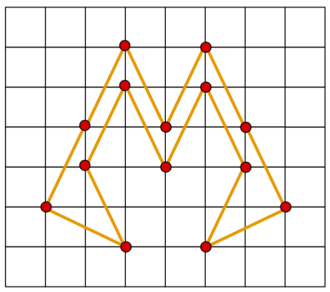 A polygon is simple if there are exactly two edges touching each vertex, and no two edges of the polygon intersect except at its vertices. A polygon is a lattice polygon if the coordinates of each of its vertices are integers.