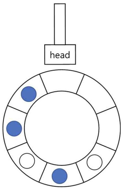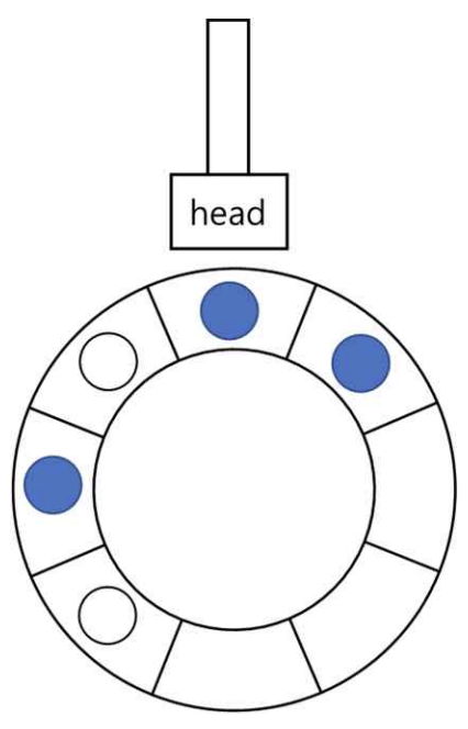 Tim has a machine for sorting balls, namely WEB machine. The WEB machine has a wheel with $n$ slots. Each slot may have a white ball (W), a blue ball (B), or it can be empty (E). Over a certain slot, the machine has a head to identify the status of the slot. The head can determine the color of the ball in the slot. It can also pick the ball in the slot or drop the ball into the slot. The head, however, can hold at most one ball at a time. The WEB machine can rotate the wheel of slots clockwise or counterclockwise. Fig. 1 shows an example of WEB machine.