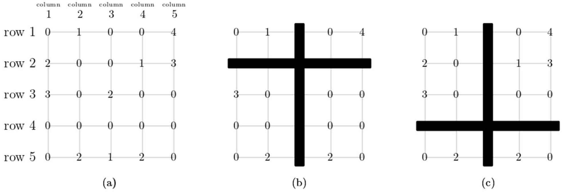 Your program is to read from standard input. The input starts with a line containing two integers, $n$ and $k$ ($3 ≤ n ≤ 2\,000$, $4 ≤ k ≤ 1\,000$), where $n$ is the number of rows and columns of the grid and $k$ is the number of colors. In the following $n$ lines, the $i$-th line contains $n$ integers that represent the colors of the points $(i,j)$ for $1 ≤ j ≤ n$. The integer $c$ that represents the color of a point is in range $0 ≤ c ≤ k$.
