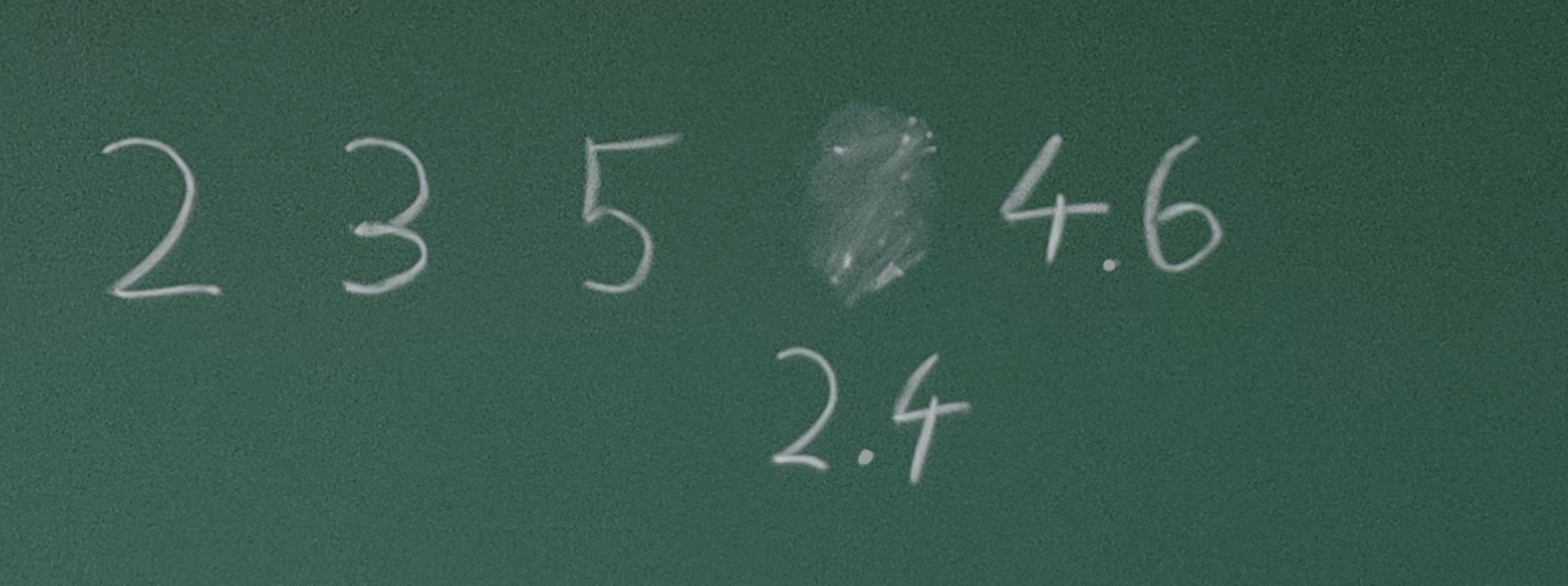 Figure B.1: Illustration of Sample Input 1. The $7$ can be replaced by $2.4$ and $4.6$. The $4.6$ can in turn be replaced by $2.6$ and $2$. Finally, the $5$ can be replaced by $2.3$ and $2.7$. After that, the largest value ($3$) is $50\%$ larger than the smallest value ($2$).