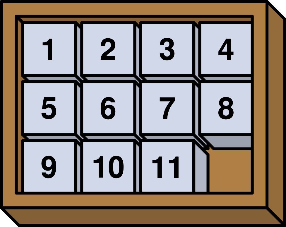 Each tile is labelled with a unique number, as shown in Figure G.1. To solve a sliding puzzle, you need to find a sequence of moves that puts the tile numbers in ascending order, from left to right and top to bottom, such that the empty square ends up at the bottom right position in the grid, as shown in Figure G.2. Such a sequence of moves does not exist for all sliding puzzles.