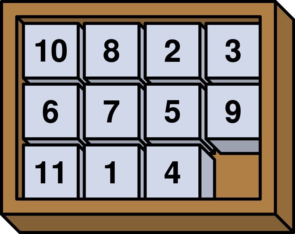 Each tile is labelled with a unique number, as shown in Figure G.1. To solve a sliding puzzle, you need to find a sequence of moves that puts the tile numbers in ascending order, from left to right and top to bottom, such that the empty square ends up at the bottom right position in the grid, as shown in Figure G.2. Such a sequence of moves does not exist for all sliding puzzles.