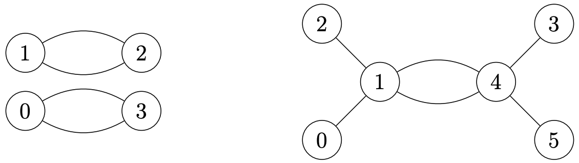 Otherwise, output the word 'NO' on the first line. On the second line, output any two cities $A$ and $B$ ($0 \le A, B \le N-1$; $A \ne B$) such that it is impossible to travel from $A$ to $B$ using the roads. If there are several possible answers, output any one of them.
