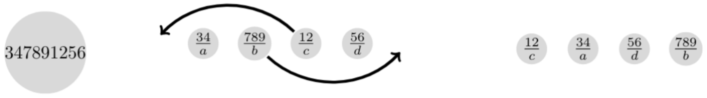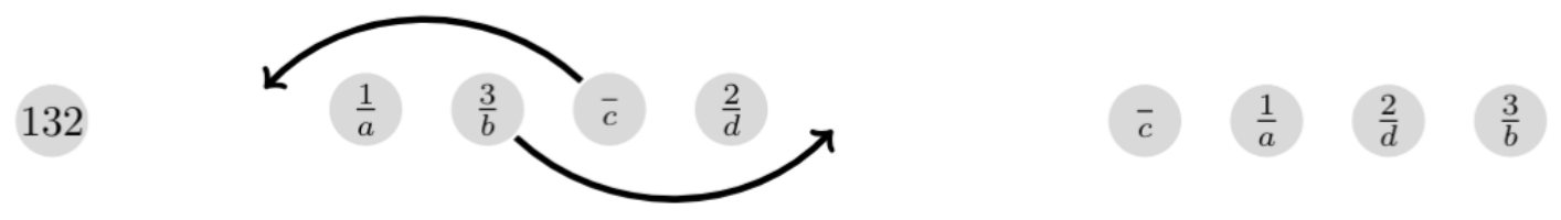 Najprije ih je sve posložio u niz nad kojim može raditi samo jedan tip operacije, tzv. malnar-swap. Jedna malnar-swap operacija izgleda ovako: