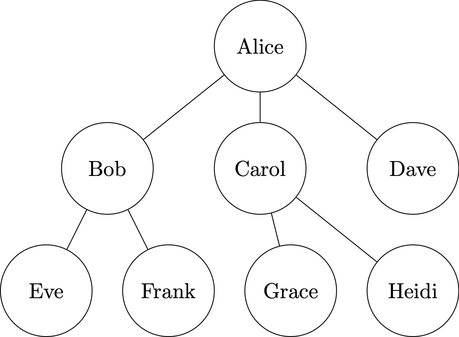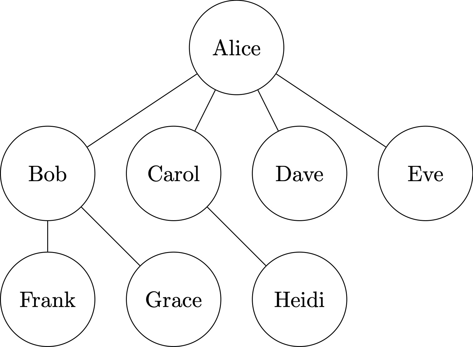 8 Alice Alice - Bob Alice - Carol Alice - Dave Bob - Eve Bob - Frank Carol - Grace Carol - Heidi