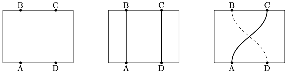 Consider, for example, the board shown on the left on the figure below. If one conductor has to connect A to B and another D to C, this could be achieved in a single layer, as shown in the middle on the figure. But a conductor connecting A to C and another connecting D to B could not be laid out in the same layer, as can be seen on the right on the figure.