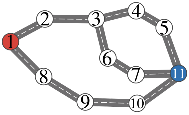The road network is represented by the following picture: