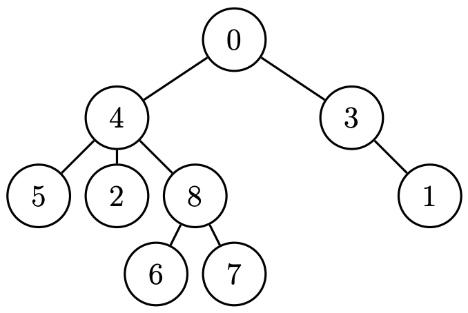 $N$개의 각 생명체에는 $0$ 이상 $N-1$ 이하의 서로 다른 탄생 번호가 붙어 있다. 탄생 번호는 생명체가 탄생한 순서대로 부여된다. 이에 따라, 부모 생명체의 탄생 번호는 자식 생명체의 탄생 번호보다 작으며, 최초 생명체의 탄생 번호는 $0$이다.