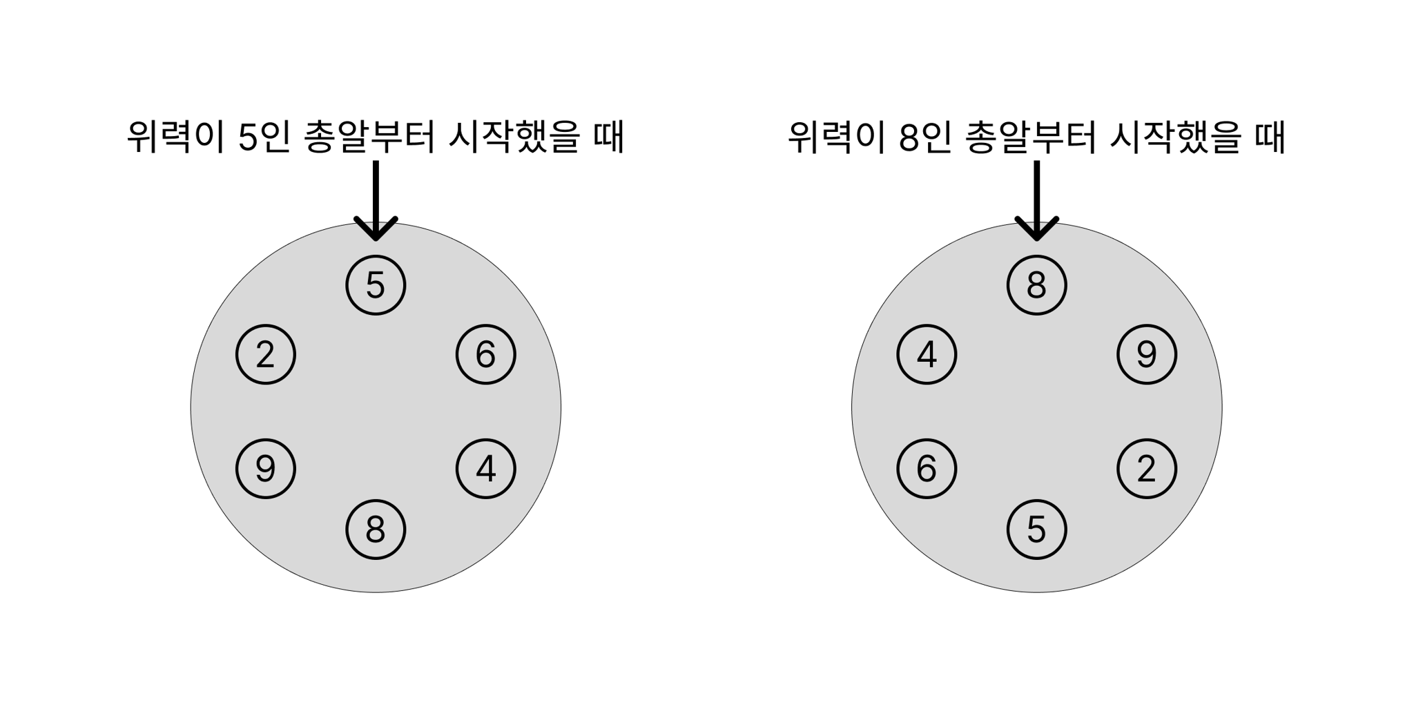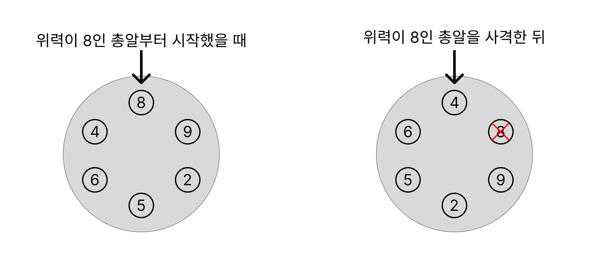 총알은 입력된 순서대로 반시계방향을 이루고 있다.