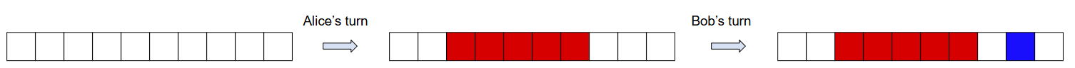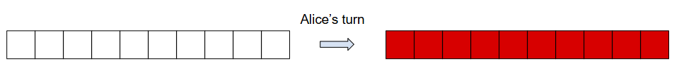 In the first sample, since Alice goes first and $a = n = 10$, she can fill in the entire board on her first move, and Bob will not have any legal moves, losing the game.