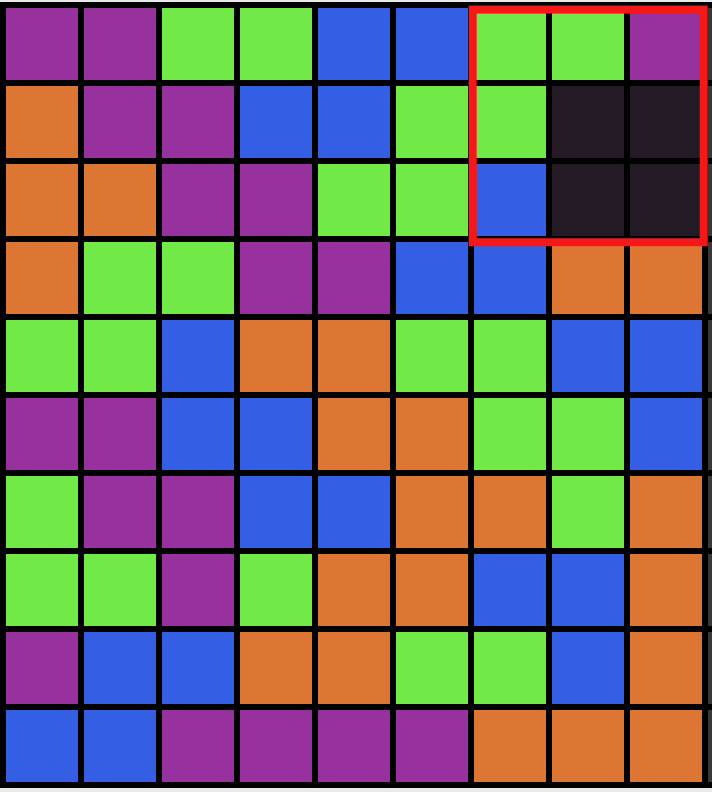 | 3 | 30 | Every connected component of equal values in the grid has size at most $5$. |