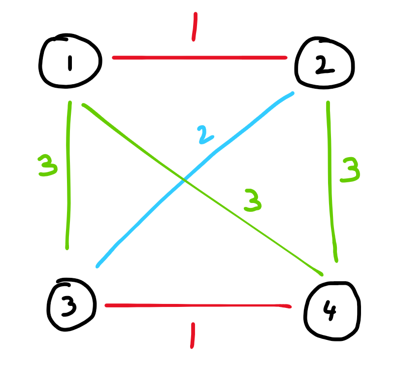 You will receive $20\%$ of the points for each subtask if you correctly decide if a solution exists, but your constructions are incorrect. Specifically, in order to receive these points, when a solution does not exist, you must output $-1$. When a solution exists, you must output some $N$ ($1 \leq N \leq 300$) and a matrix $a$ that meets the specifications of ($a_{ii} = 0, a_{ij} = a_{ji}, 1 \leq a_{ij} \leq K$ for $i \neq j$).