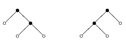 In this order a single leaf is the smallest tree and given two nonleaf trees, the smaller one is that with the smaller left tree, if the left subtrees are different, and that with the smaller right subtree, otherwise. Hence for instance (○,(○,○)) ≺ ((○,○),○), since we have ○ ≺ (○,○). Assume now that the trees in B(n) were sorted using the relation ⪯. Then, for each tree t in B(n) we define the successor of t as the tree that immediately follows t in B(n). If t is the largest one in B(n) then the successor of t is the smallest tree in set B(n). For instance, the successor of (○,○) in B(3) is the same tree (○,○) and the successor of (○,(○,○)) in B(5) is ((○,○),○).