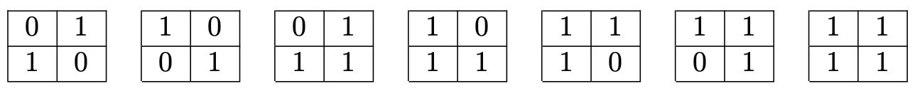 Sve dobre tablice s $2$ retka i $2$ stupca: