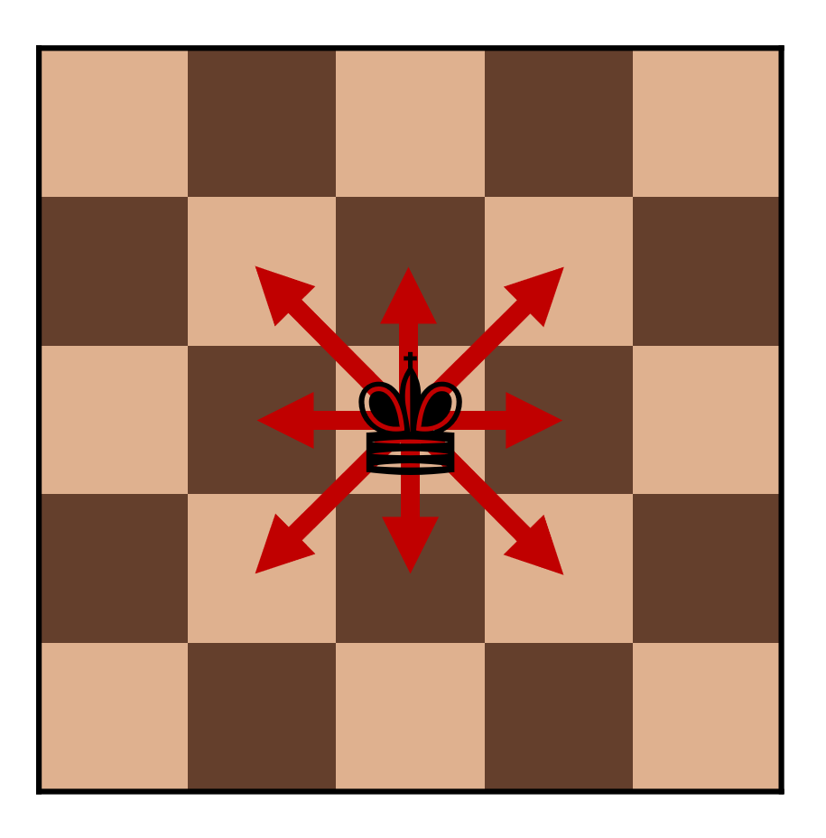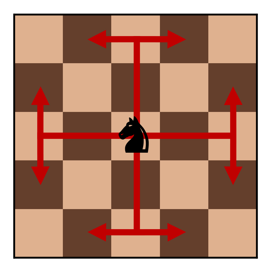 체스에서 나이트와 킹은 다음과 같이 이동할 수 있다.