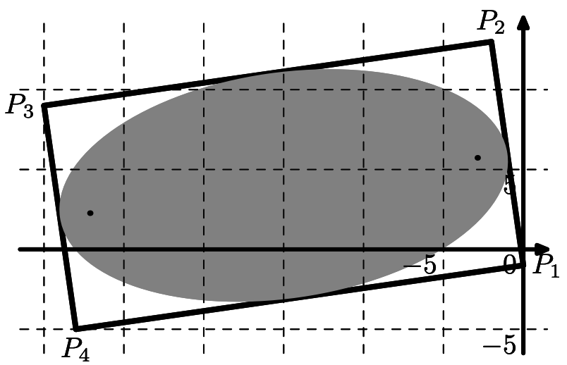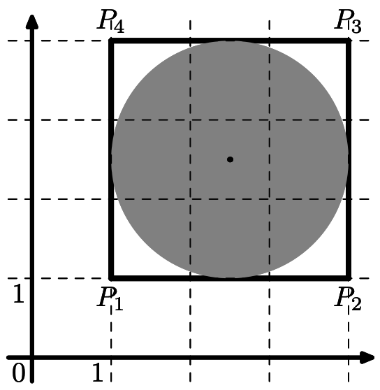 You are given a rectangle on the plane with vertices at integer points. Calculate the area of the largest ellipse that can fit entirely within this rectangle. Recall that a rectangle is a convex quadrilateral with all right angles, and an ellipse is a figure on the plane defined by two focal points $F_1$ and $F_2$ (not necessarily with integer coordinates; possibly $F_1 = F_2$) and a real number $d > |F_1 F_2|$, consisting of points $P$ on the plane such that $|F_1 P| + |F_2 P| \le d$.