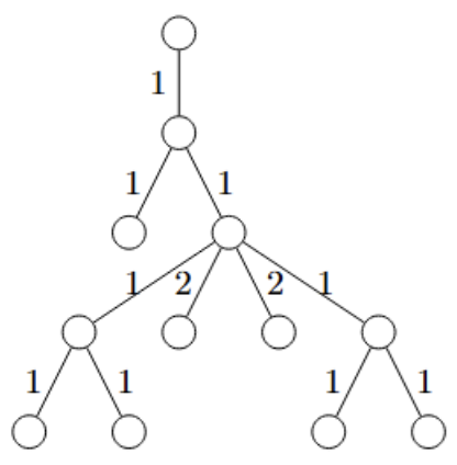 Explanation of Sample 1: The following illustrates, for the first case, a rooted tree with the maximum number of vertices.