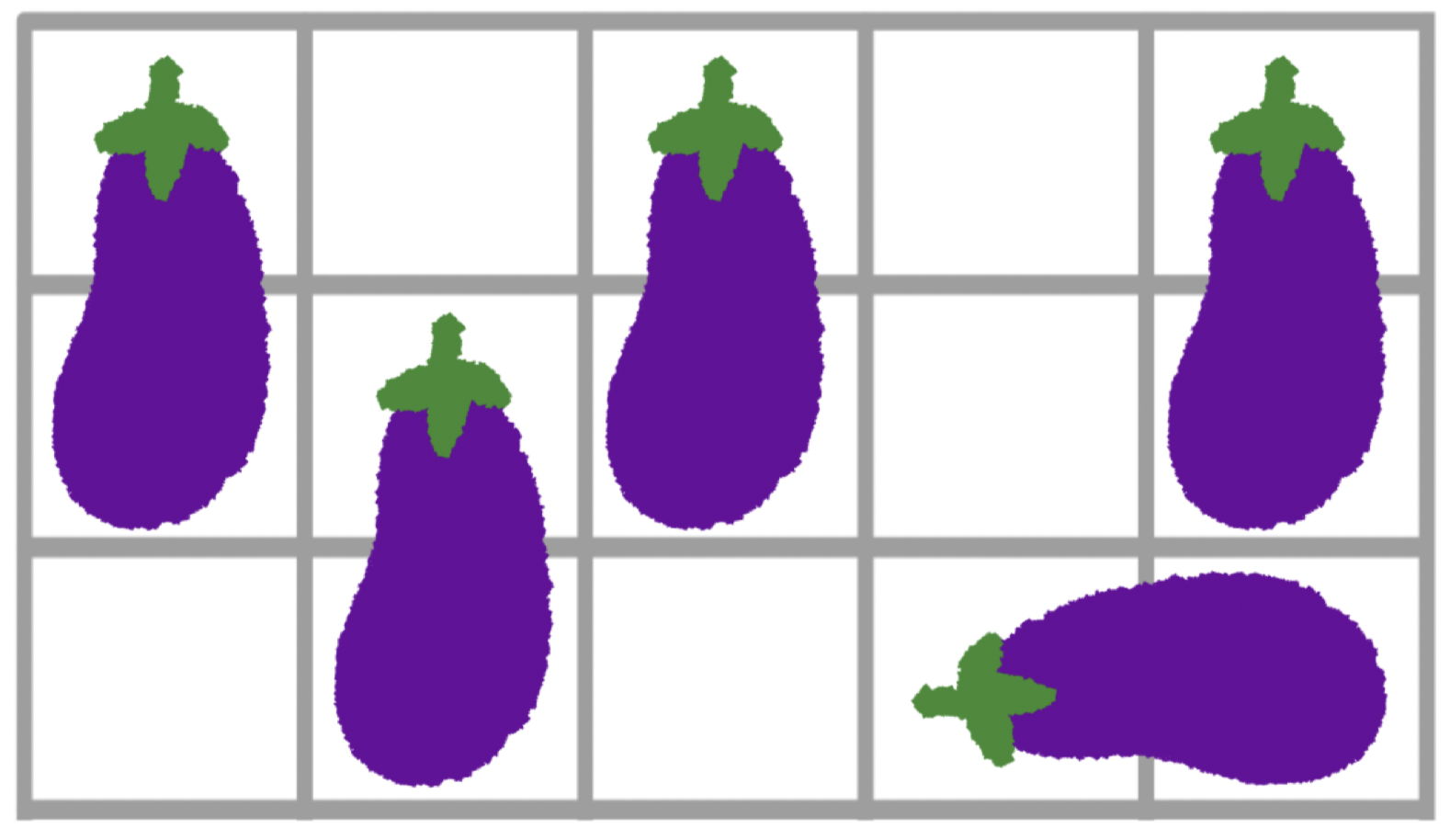 .: 빈 칸G: 가지의 꼭지g: 가지의 몸통가능한 배치 방법이 여러 가지라면 그중 아무거나 출력한다.