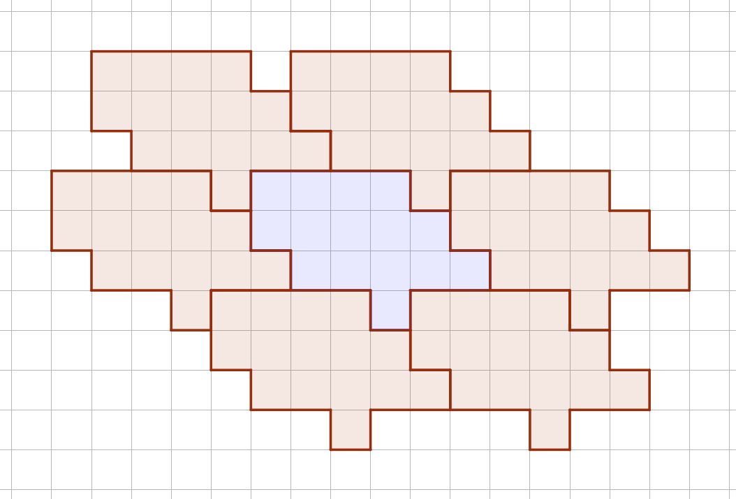 Part of a tiling for the first polyomino in the sample input.