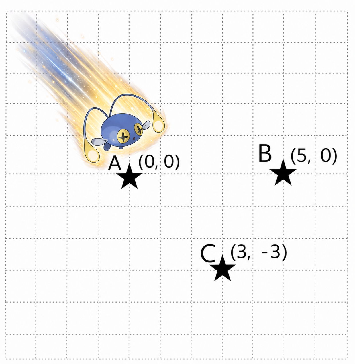 $1$번 경로 $\rightarrow$ $2$번 경로 $\rightarrow$ $3$번 경로의 순서로 이용하면, 지불해야 하는 사탕의 개수는 $2^1 + 2^2 + 2^3 = 14$개가 되어, 3명이서 균등하게 나눈다면 각자 $14 \over 3$개의 사탕을 지불해야 한다.