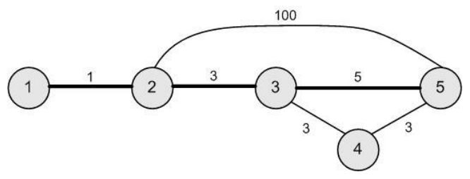 Nikola는 Bit 마을에 살고 있고 Hex 마을에 사는 Anita의 남자친구이다. Nikola는 주변 지도를 아주 잘 알고 있어서 두 마을 사이의 최단 경로를 찾았다. 그리고 이 경로를 운 좋은 경로라고 부르기로 했다. 주변 지도는 서로 다른 마을을 잇는 양방향 도로의 집합으로 표현된다.