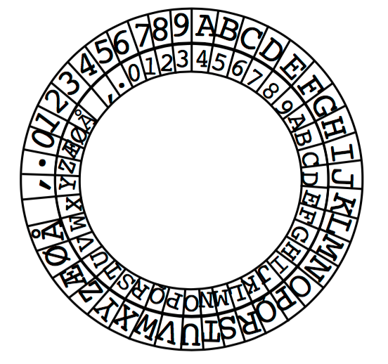 Kodehjulet består av et ytre fast hjul der alle tegn som kan brukes i koden er skrevet langs hjulets kant. Først står boktavene A til Å fortløpende etterfulgt av tegnene mellomrom, komma og punktum. Til sist står tallene 0–9. Innenfor det faste hjulet er det et mindre bevegelig hjul som inneholder akkurat de samme tegnene slik at de passer mot det ytre hjulet. For å kode en melding vrir man det indre hjulet til en vilkårlig posisjon. Hvert tegn i meldingen lokaliseres på det ytre hjulet og erstatter med tegnet rett innenfor på det indre hjulet. Tilsvarende når man skal dekode en melding så må man først vite hvilken posisjon det indre hjulet skal stå i, og så finner man hvert tegn fra den krypterte meldingen på det indre hjulet og bytter med tegnet rett utenfor på det ytre hjulet.