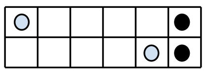 The game is played on a rectangular checkerboard (the size of the board varies), that contains white and black checkers (corresponding to the two players) in a given arbitrary placement. In each row, there can be at most one white checker and at most one black checker. Starting with the white player, the two players take turns sliding their checkers. In each turn, a player can choose one of his checkers and slide it along its row (there is no movement across rows) to any empty position; however, you cannot jump any other checker (if there is another checker on the board) or go outside of the board.