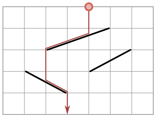 Tada kairiausios platformos dešinysis galas buvo pakeltas 2 vienetais aukštyn, ir kitas kamuoliukas nuriedėjo šia platforma į kairę. Tada viršutinės platformos kairysis galas buvo pakeltas 3 vienetais aukštyn, ir kitas kamuoliukas nuriedėjo and dešiniosios platformos.