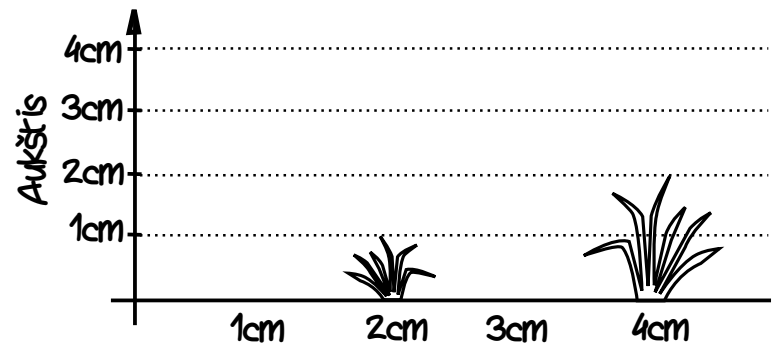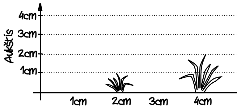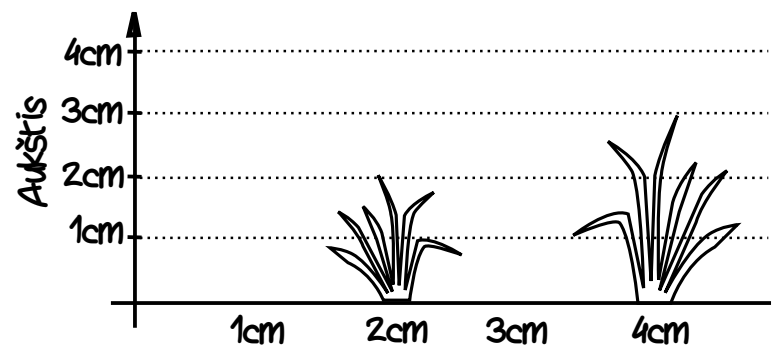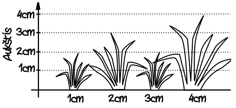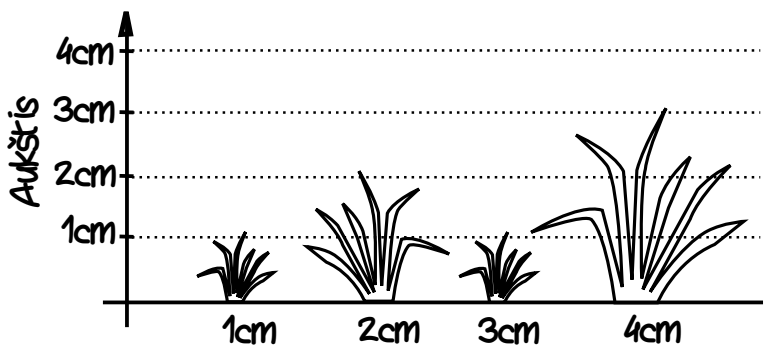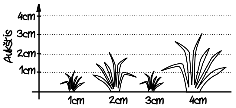 Sakykime, pievelės ilgis yra 4cm (N = 4) ir joje auga tokio aukščio žolės kuokštai: