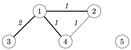 The first line shows the number of cities N, and the number of profitable routes M. Cities are labeled 1 to N. The following M lines contain three numbers each – ai, bi, and pi, where ai and bi are the two cities joined by the i-th routes, and pi is the profitability of the route. No two routes connect the same pair of cities.