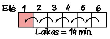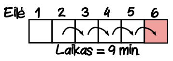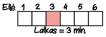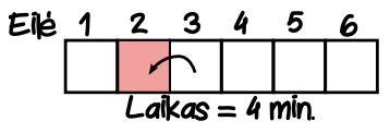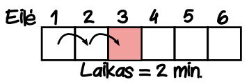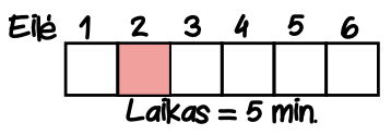 Palydovė nueina iki 3 eilės, tai jai užtrunka 2 min.