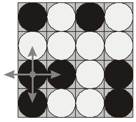 The goal of the game is to flip either all pieces white side up or all pieces black side up. You are to write a program that will search for the minimum number of rounds needed to achieve this goal.