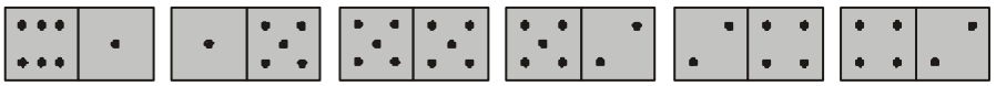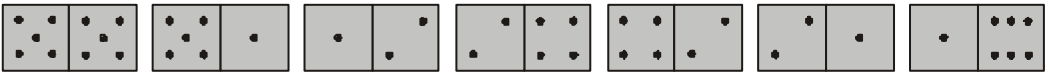 game played with small, rectangular blocks of wood or other material, each identified by a number of dots, or pips, on its face. The blocks usually are called bones, dominoes, or pieces and sometimes men, stones, or even cards. The face of each piece is divided, by a line or ridge, into two squares, each of which is marked as would be a pair of dice... The principle in nearly all modern dominoes games is to match one end of a piece to another that is identically or reciprocally numbered.