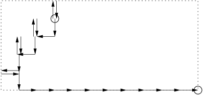 Twój program powinien wypisać na standardowe wyjście dwie liczby całkowite oddzielone pojedynczym odstępem: wysokość i szerokość najmniejszego arkusza, na którym zmieści się trasa podróżnika, wyrażone w centymetrach. Możesz założyć, że obie liczby będą nie większe niż $1\,000\,000\,000$.