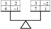 Wyjaśnienie do przykładu: Suma wag cegiełek na lewej szalce jest równa 8, a na prawej 9. Aby zrównoważyć szalki, Bajtek może zdjąć po jednej cegiełce z drugiej wieży na lewej szalce i z pierwszej wieży na prawej szalce; wówczas obciążenie szalek wyniesie $3 + 4 + (-1) = 6 = 7 + (-2) + 1$.