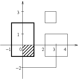 W pierwszym wierszu wejścia znajduje się jedna liczba całkowita $n$ ($1 ≤ n ≤ 100\,000$) - jest to liczba zdjęć na tablicy. W każdym z następnych $n$ wierszy znajdują się po cztery liczby całkowite. W wierszu $i+1$-szym zapisane są liczby $L_i$, $D_i$, $P_i$, $G_i$ ($-200\,000 ≤ L_i, D_i, P_i, G_i ≤ 200\,000$ oraz $L_i < P_i$ i $D_i < G_i$), poddzielane pojedynczymi odstępami. Są to współrzędne zdjęcia w układzie kartezjańskim na tablicy: $(L_i, D_i)$ to współrzędne lewego dolnego, natomiast $(P_i, G_i)$ to współrzędne prawego górnego rogu zdjęcia. Przyjmujemy, że pinezka wbita w punkt $(x, y)$ przebije to zdjęcie, jeśli $L_i ≤ x ≤ P_i$ oraz $D_i ≤ y ≤ G_i$.