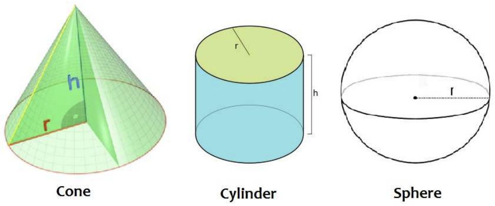Write a program to find the maximum volume of given geometric 3-dimensional figures. Here, there are 3 types of figures: cone, cylinder and sphere.