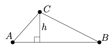 We give you a useful formula to help you solve this problem. Let \(A = (x_a, y_a)\), \(B = (x_b , y_b)\) and \(C = (x_c, y_c)\) be three points. The height \(h\) (see Figure 2) of the triangle \(ABC\) is given by the following formula